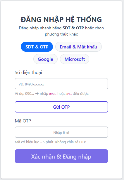 Platform sẽ dẫn bạn đến trang đăng nhập đầu tiên, bạn có thể sử dụng SĐT hoặc Gmail để đăng nhập, đây cũng là tài khoản mà bạn sử dụng trong suốt quá trình cộng tác với DAT