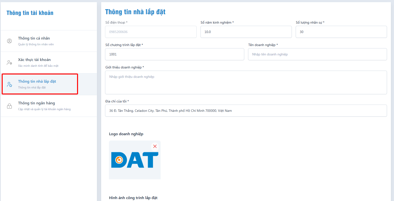 - Nhận yêu cầu hợp tác: sau khi bạn xác nhận sẽ tham gia thi công công việc này, Đối tác Chiến lược DAT sẽ nhận được thông tin hợp tác của bạn, nếu Đối tác Chiến lược đồng ý hợp tác sẽ liên hệ với bạn qua số điện thoại của bạn để thực hiện công việc. Sau khi kết thúc công trình, đối tác lắp đặt sẽ đánh giá chất lượng của bạn trên Platform