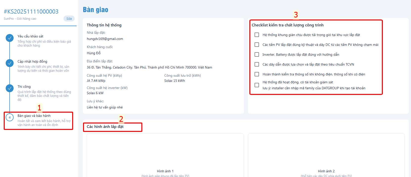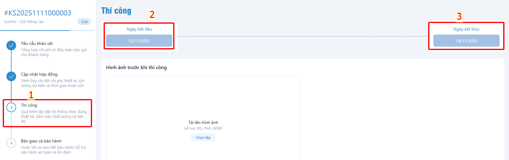 - Upload các hình ảnh sau thi công