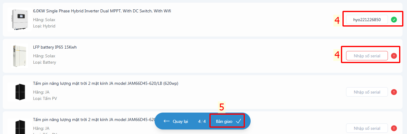 - Chọn bước bàn giao và bảo hành