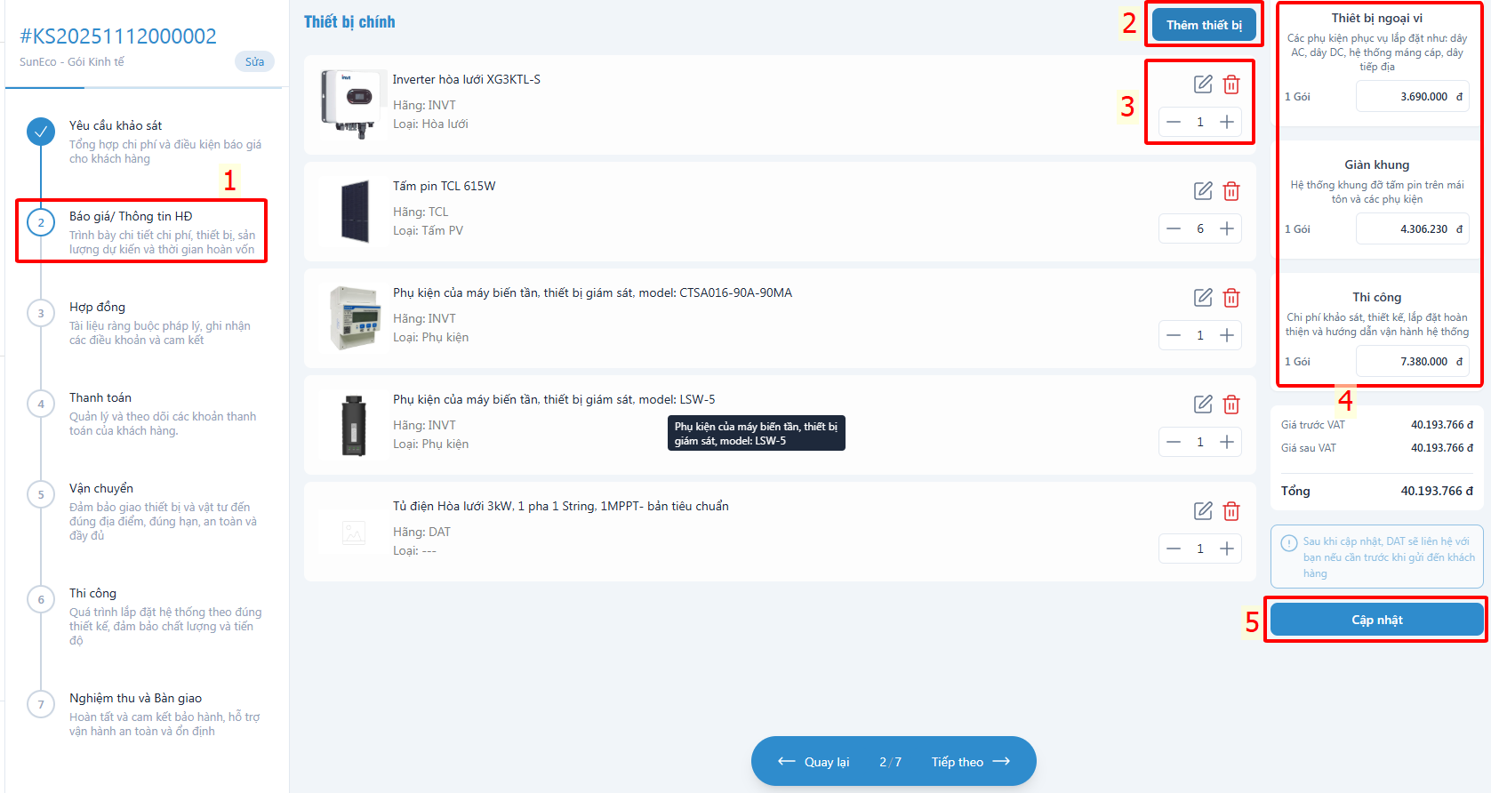 Bước 6: Lập báo giá cho khách hàng